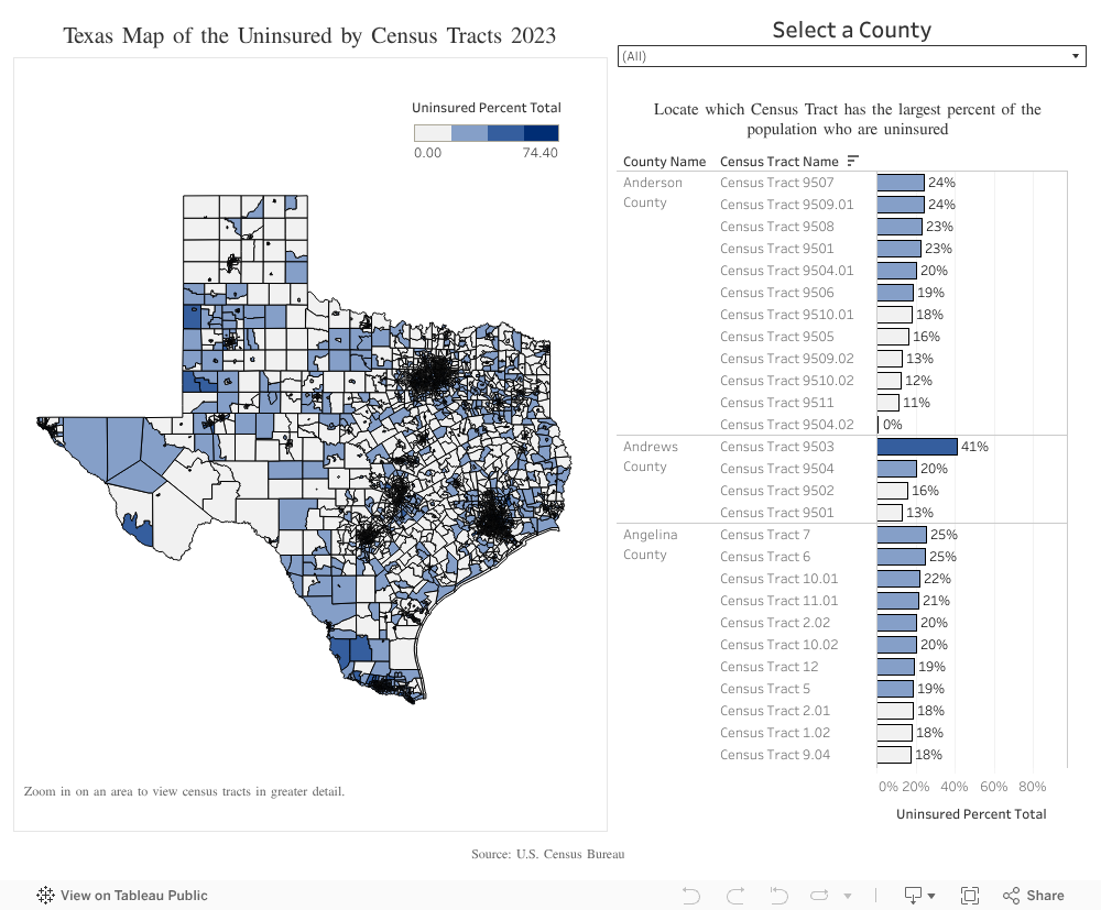 This level of detail is crucial for making targeted, effective decisions to close gaps in health coverage and improve access to care across Texas.